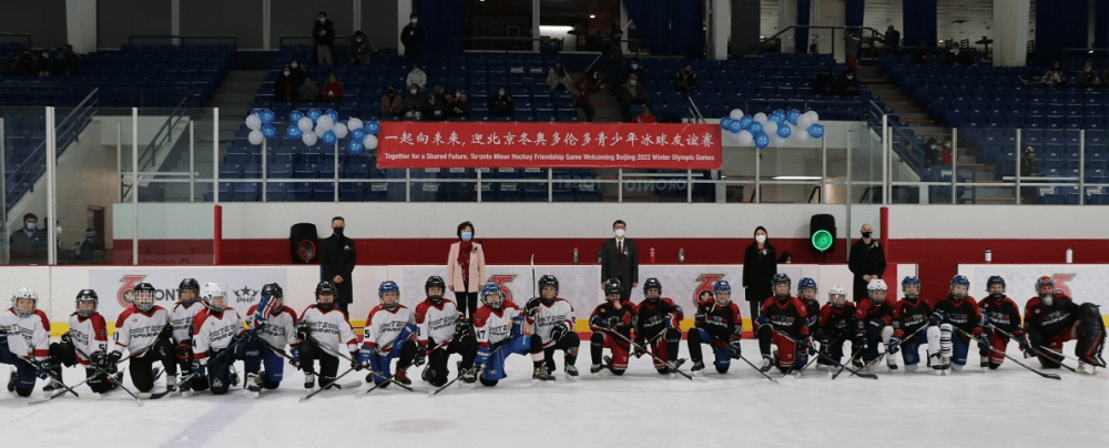 中国驻多伦多总领事韩涛受邀出席活动并为球赛开球,他说:“希望北京冬奥会进一步促进中加体育界交流,也希望参加此次友谊赛的小球员们将来有机会到访中国,与中国青少年冰球爱好者切磋技艺,增进两国人民的相互了解。”